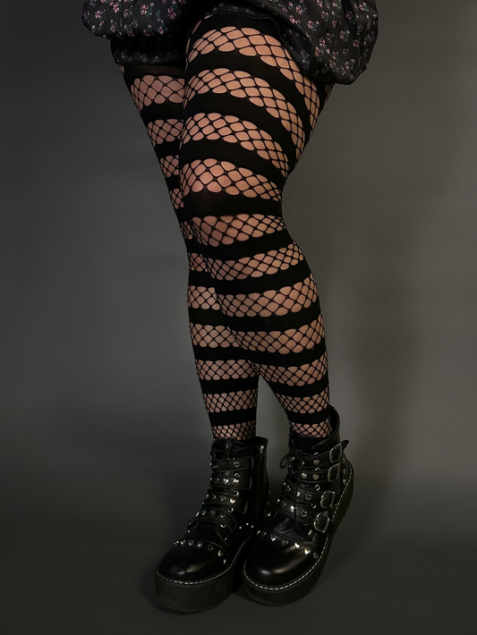 Horizontal Stripe Fishnet Tights by Pamela Mann Made in Italy