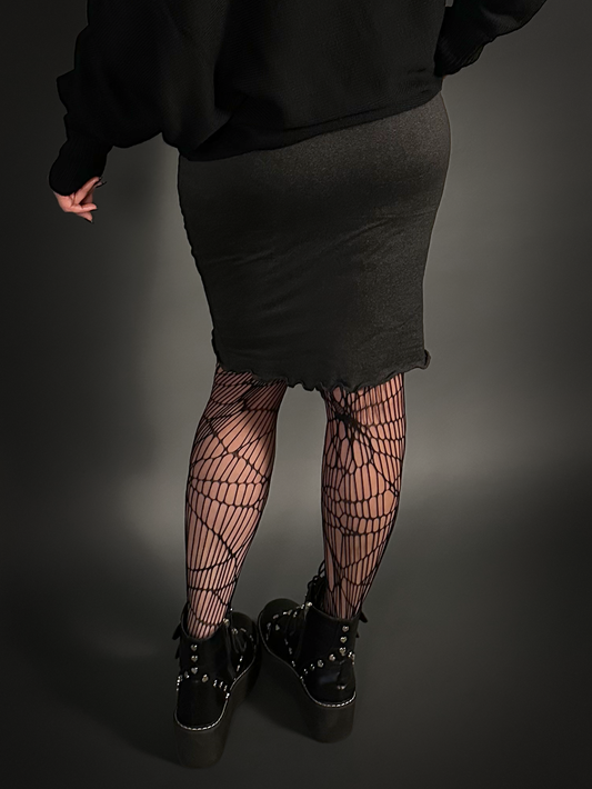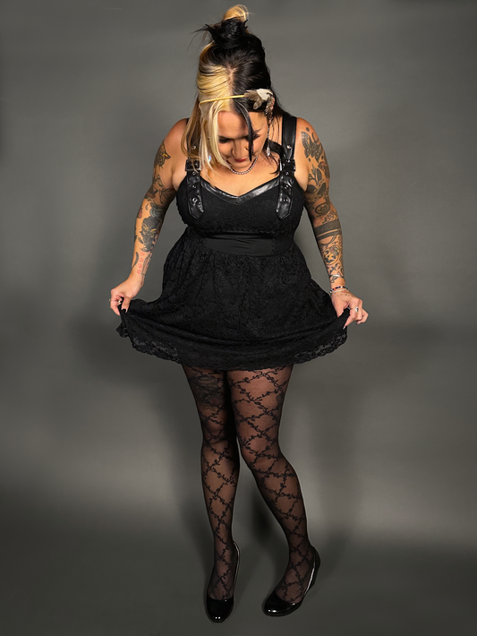 Outfit Set - Tommyrot Corset Dress w/ Faux Leather Straps & Spiderweb Tights by Pamela Mann