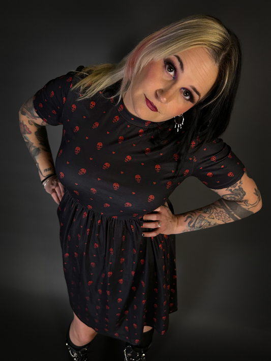 Tommyrot "Hearts & Skulls" Short Sleeve Stretch Skater Dress