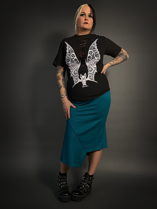 Asymmetrical Stretch Midi Skirt in Dark Emerald Blue - Alt Style