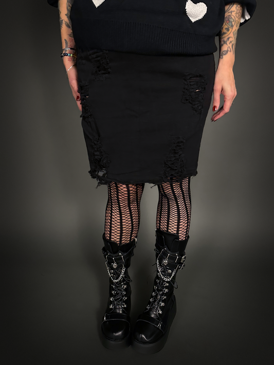 Distressed & Ripped High Waist Stretch Denim Jean Skirt in Black - Punk Style