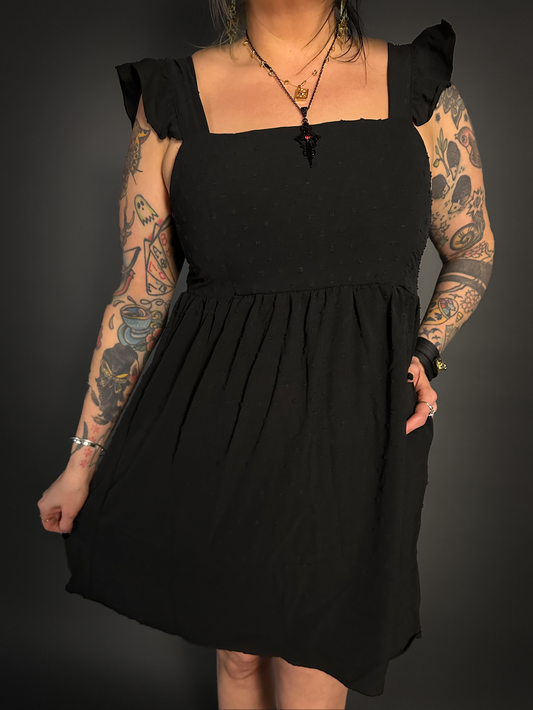 Swiss Dot Babydoll Scoop Neck Goth / Punk / Alt Dress in Ash Black