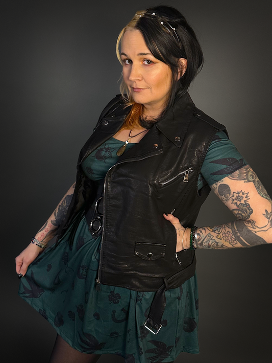Sleeveless Faux Leather Biker Jacket Vest in Green