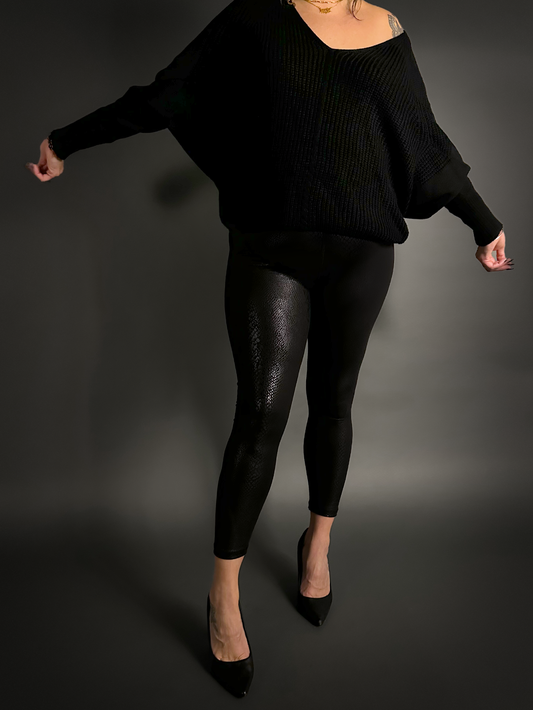 S-3XL/3XOversized Dolman Batwing Sleeve Sweater with Drop V-Neck in Black