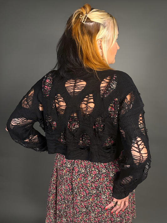 S-XL/1XOversized Black Crew Neck Sweater with White Hearts