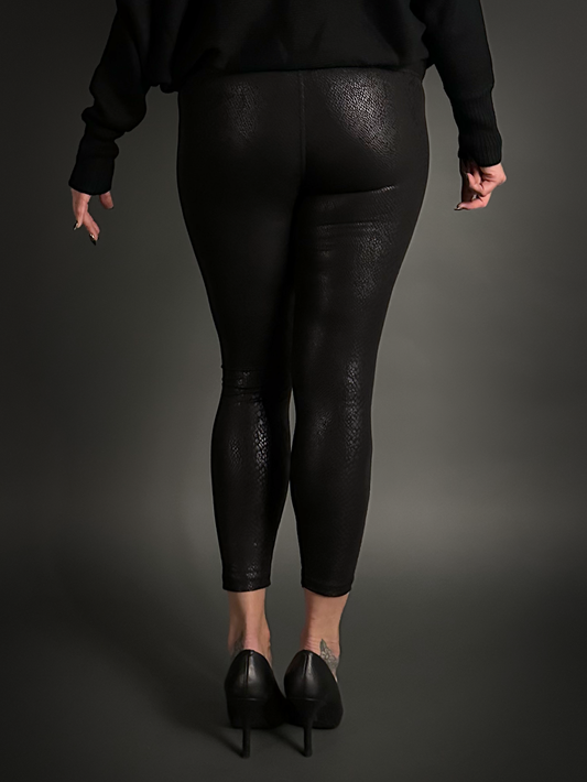 Faux Snakeskin High Waist Yoga Leggings w/ Front Pocket